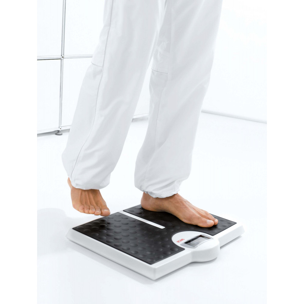 La balance Seca Robusta 813 dispose d’une plateforme extra large et solide pour les personnes pesant jusqu’à 200 kilogrammes.