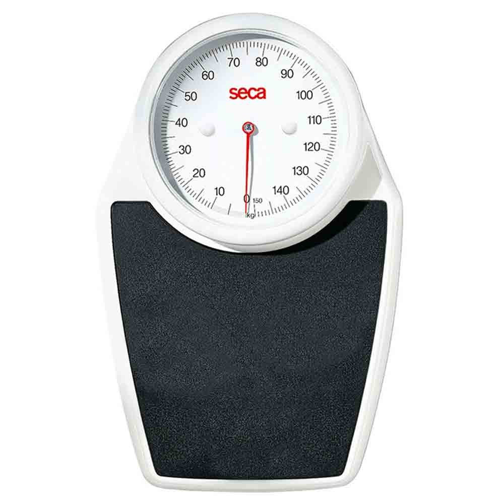 La balance Seca 761 destinée à un usage médical est extrêmement précise et dispose d’un grand cadran rond au design classique et d’un plateau bas antidérapant et résistant aux égratignures facilement accessible par le patient.
