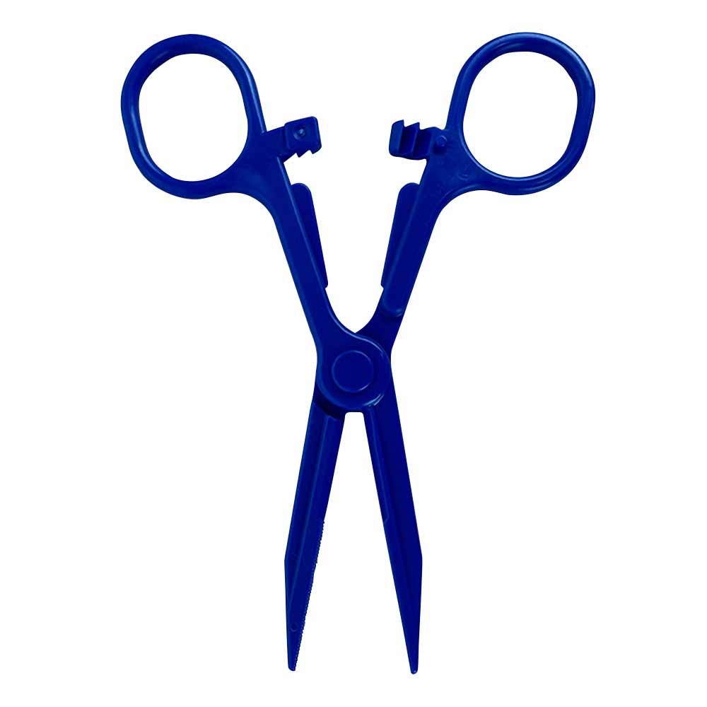Composition complète comprenant 5 compresses non tissées (7,5 x 7,5 cm), 5 boules de gaze (Ø 3 cm), 1 champ de soin plastifié bleu (38 x 45 cm), 1 pince anatomique plastique verte, et 1 pince Kocher plastique bleue (14,5 cm).