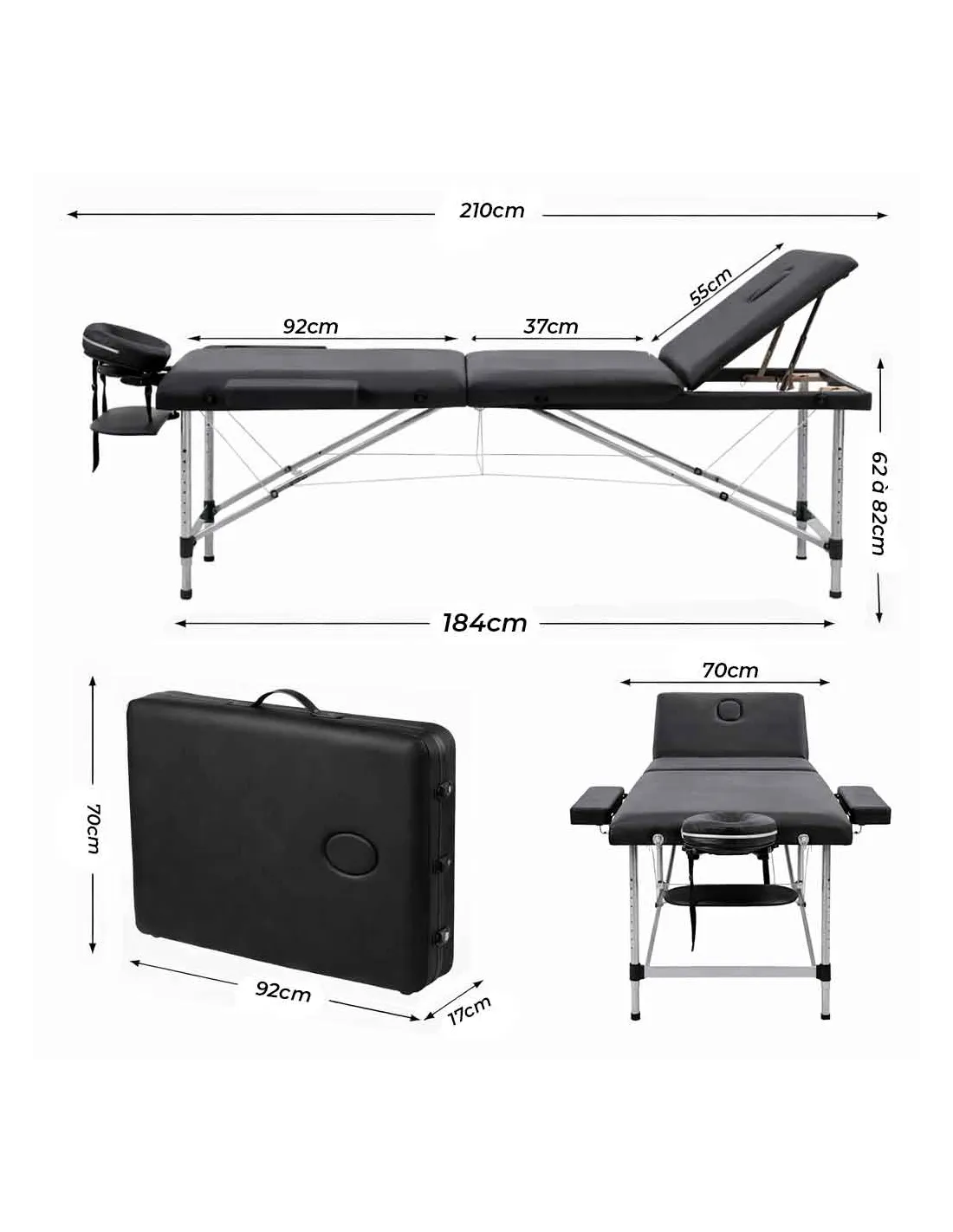 1 Table de massage pliante Beta Flex (Noire).