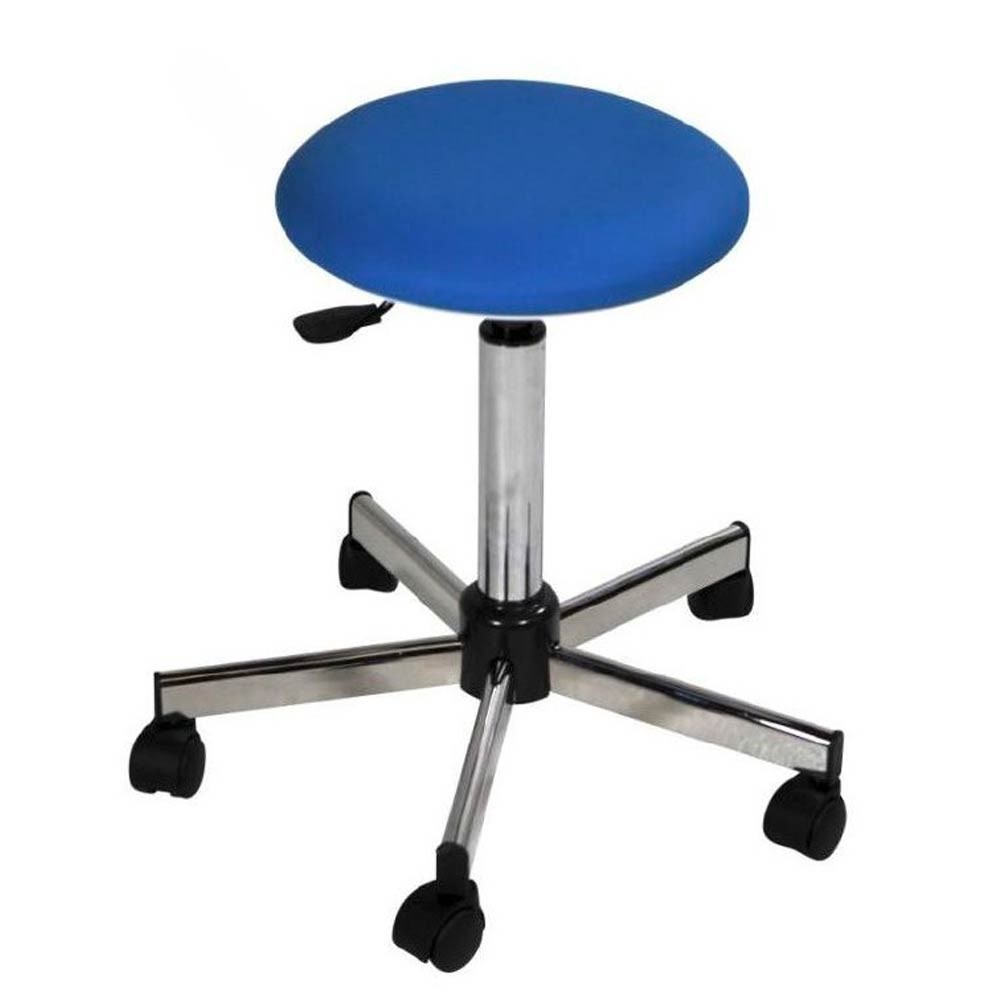 Tabouret Vog Medical avec pied chromé réglable par vérin à gaz.