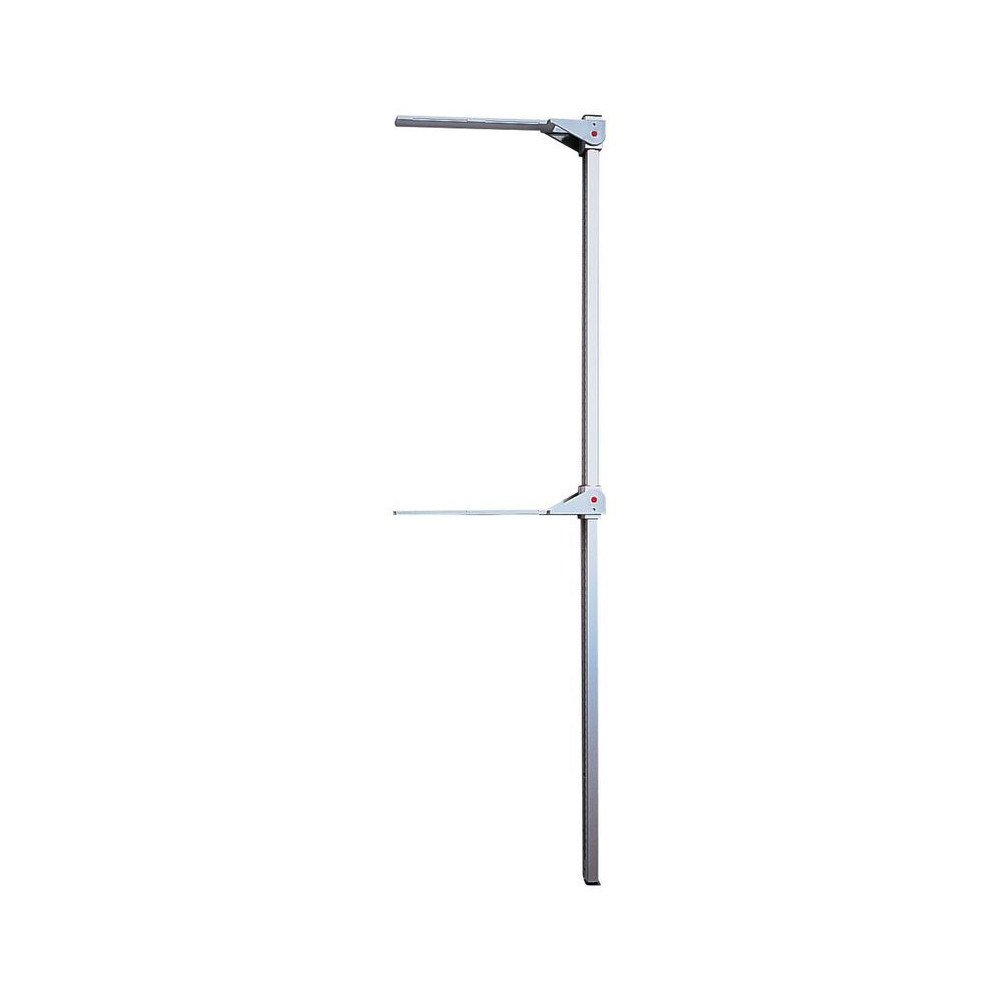 Les larges butées pour la tête et les pieds permettent une mesure rapide de la taille; les curseurs sont repliables pour réduire l’encombrement de la toise. La construction en aluminium est particulièrement robuste et durable.
