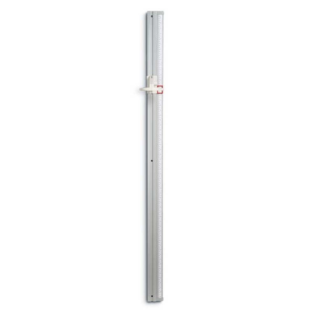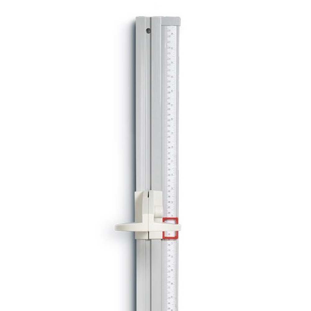 Il suffit de fixer la toise au mur à la hauteur voulue. L’utilisateur peut donc choisir lui-même la plage de mesure avec laquelle il souhaite utiliser la toise seca 216 qui permet ainsi de mesurer aussi bien la taille des enfants que celle des adultes. Le résultat exact de la mesure peut être lu pendant l’opération dans la fenêtre latérale de lecture de la taille. Le curseur étant muni d’une vis de blocage, le résultat de la mesure reste visible après la procédure.